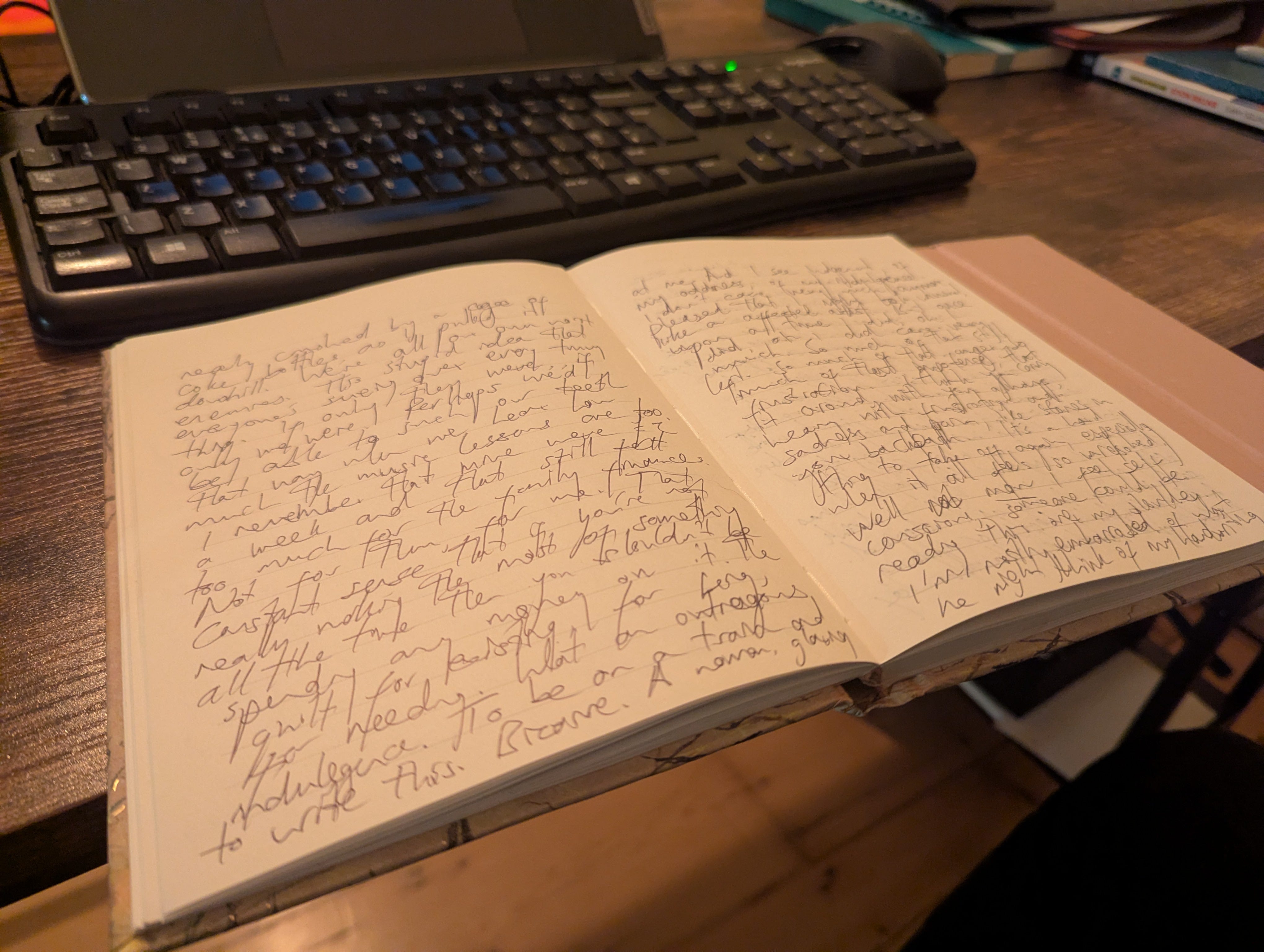…No, I didn’t lose the first draft of my novel. My laptop was gone, but as everything on it lives in nebulous cyberspace my monstrous first draft still lives. What I did lose, and what was hardest to lose despite being the least financially valuable, was my notebook.